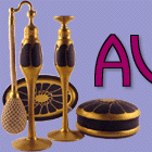 DeVilbiss Perfumizer from 1922. Beautiful finely cut clear glass with no dings or scratches. Polished bottom. Gold-plated fittings in excellent condition. It has its original ball (hardened) with crocheted netting in good shape. Bottle is pictured in Mack-DeGraaf DeVilbiss book page 77. Height 6.75 inches.... (more)