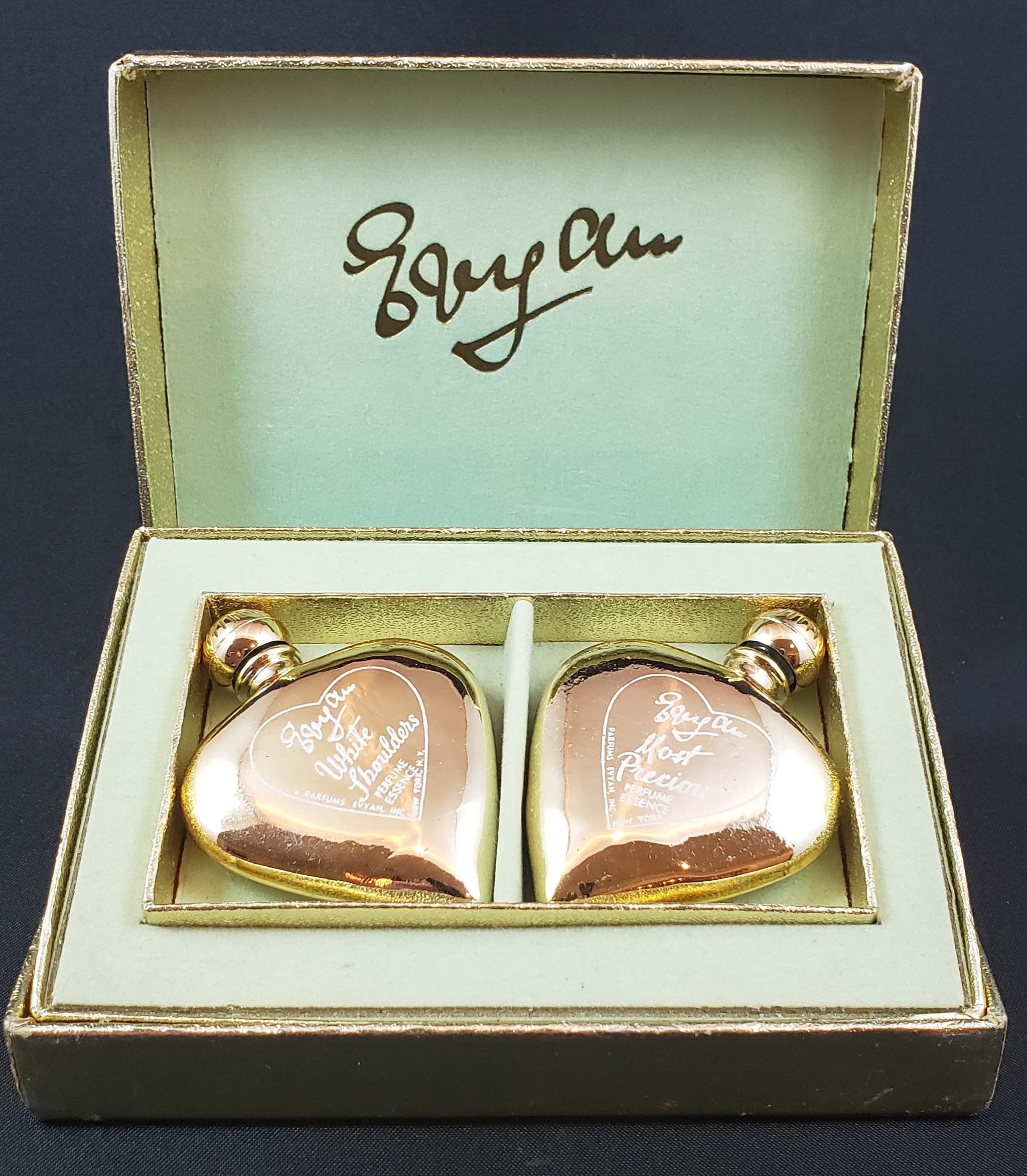Evyan Two Golden Hearts Perfume Set in Box White Shoulders & Most Precious RARE