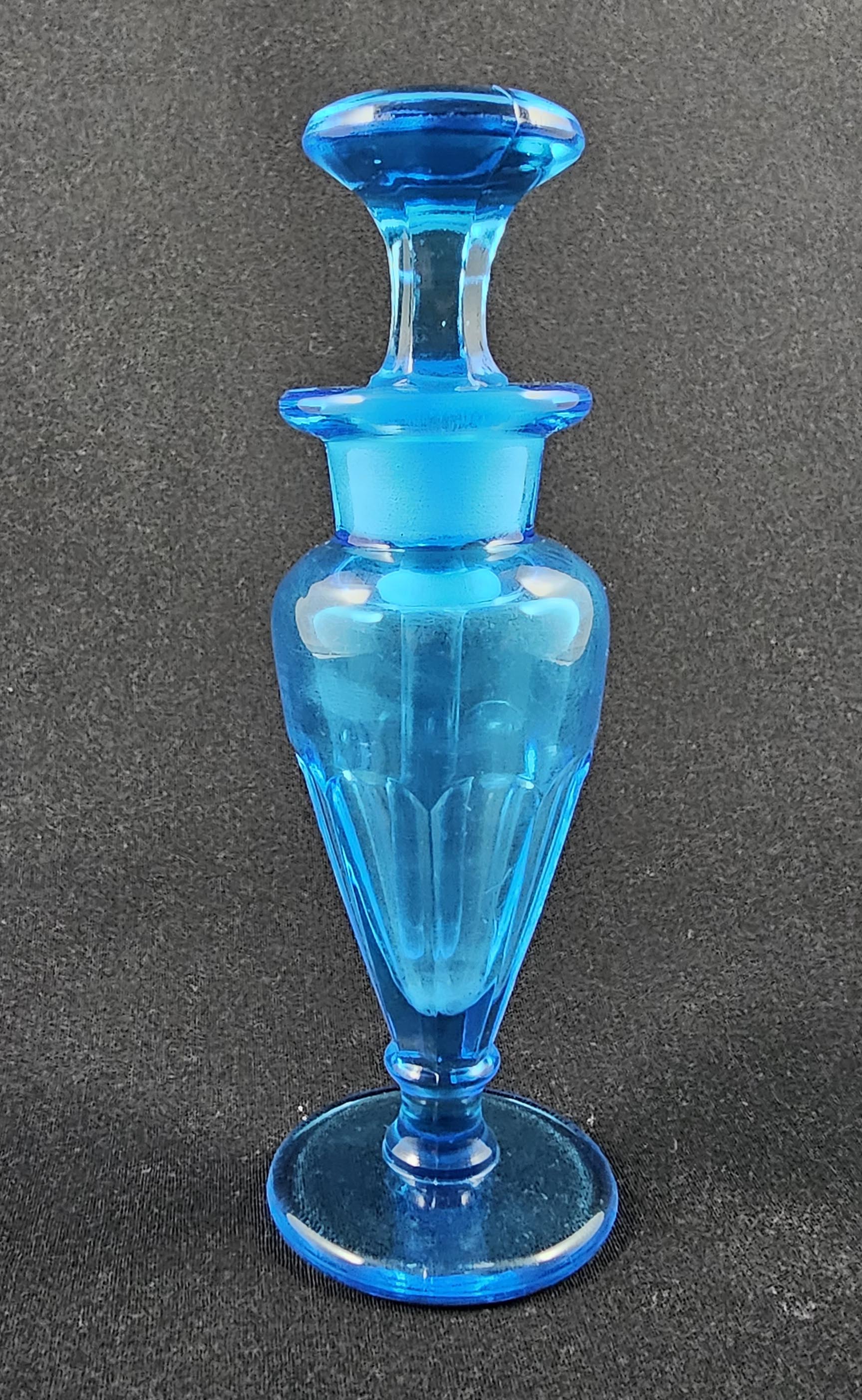 Paden City perfume dropper or dauber bottle from the mid 1920s. Catalog #501-4 from 1920s catalog reprints. Brilliant blue color with ground-in stopper. Dropper rod is perfect. Excellent overall condition with no chips, cracks, scratches or cloudiness. 5 1/2 inches tall.... (more)