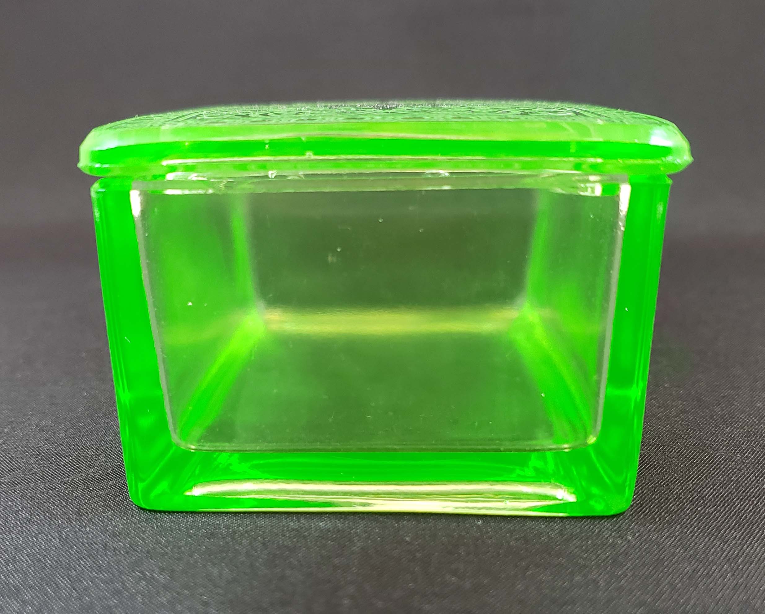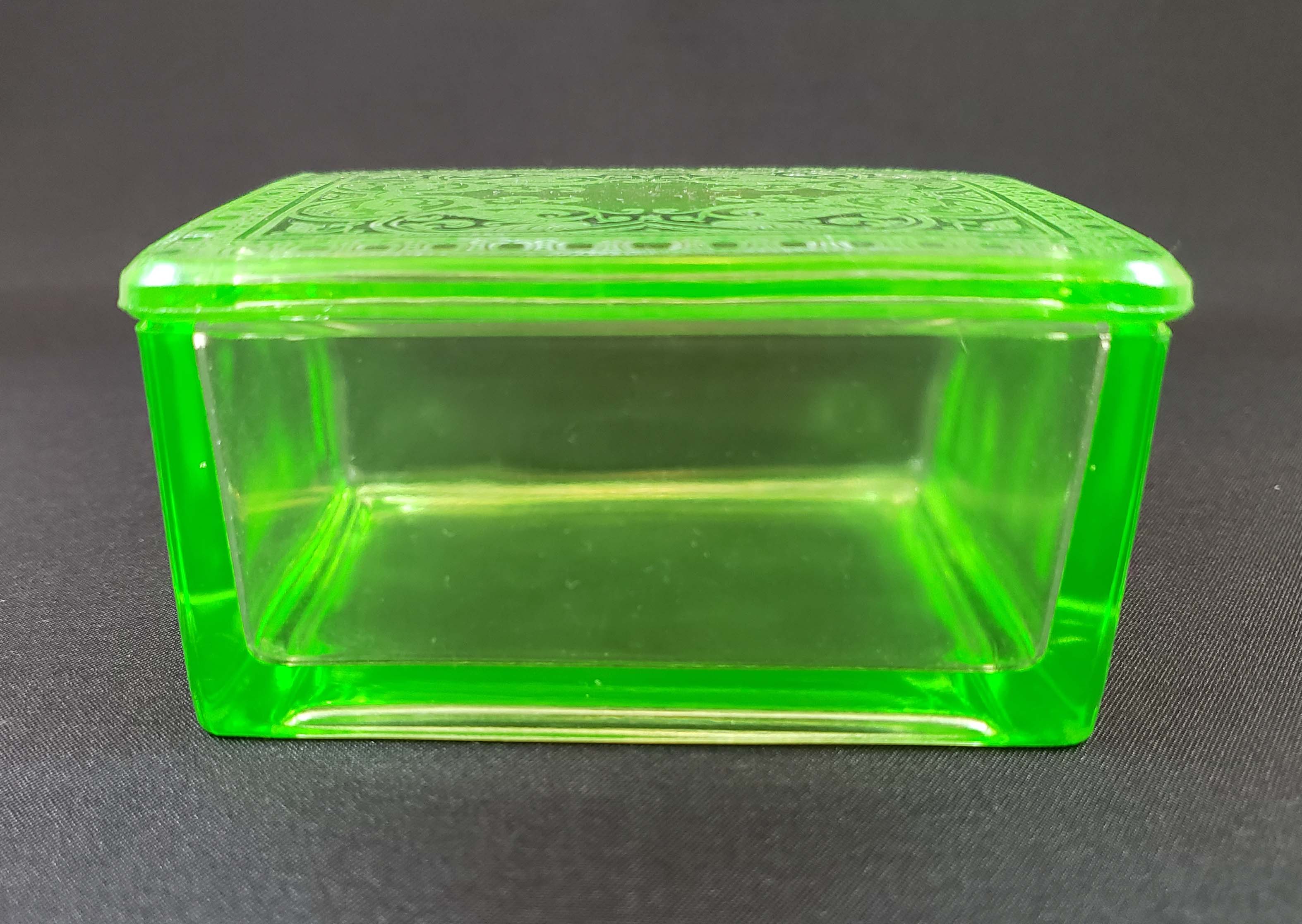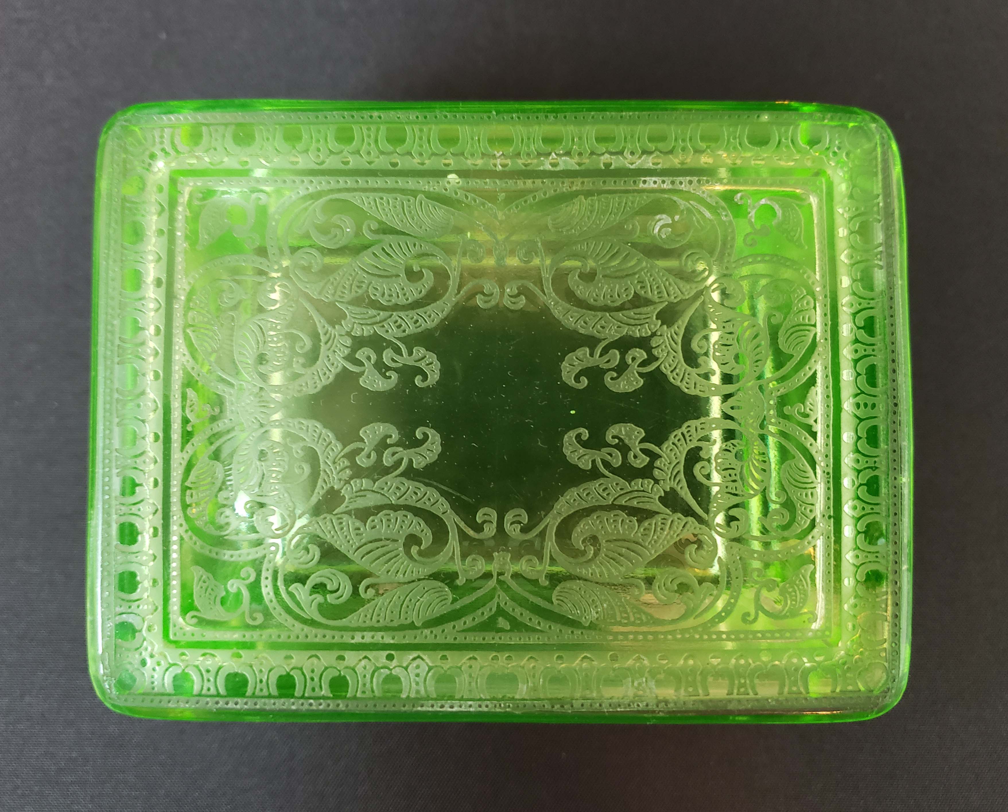 Cambridge Glass Co. Covered Trinket or Cigarette Box - Etched 704 Light Emerald Green 1927