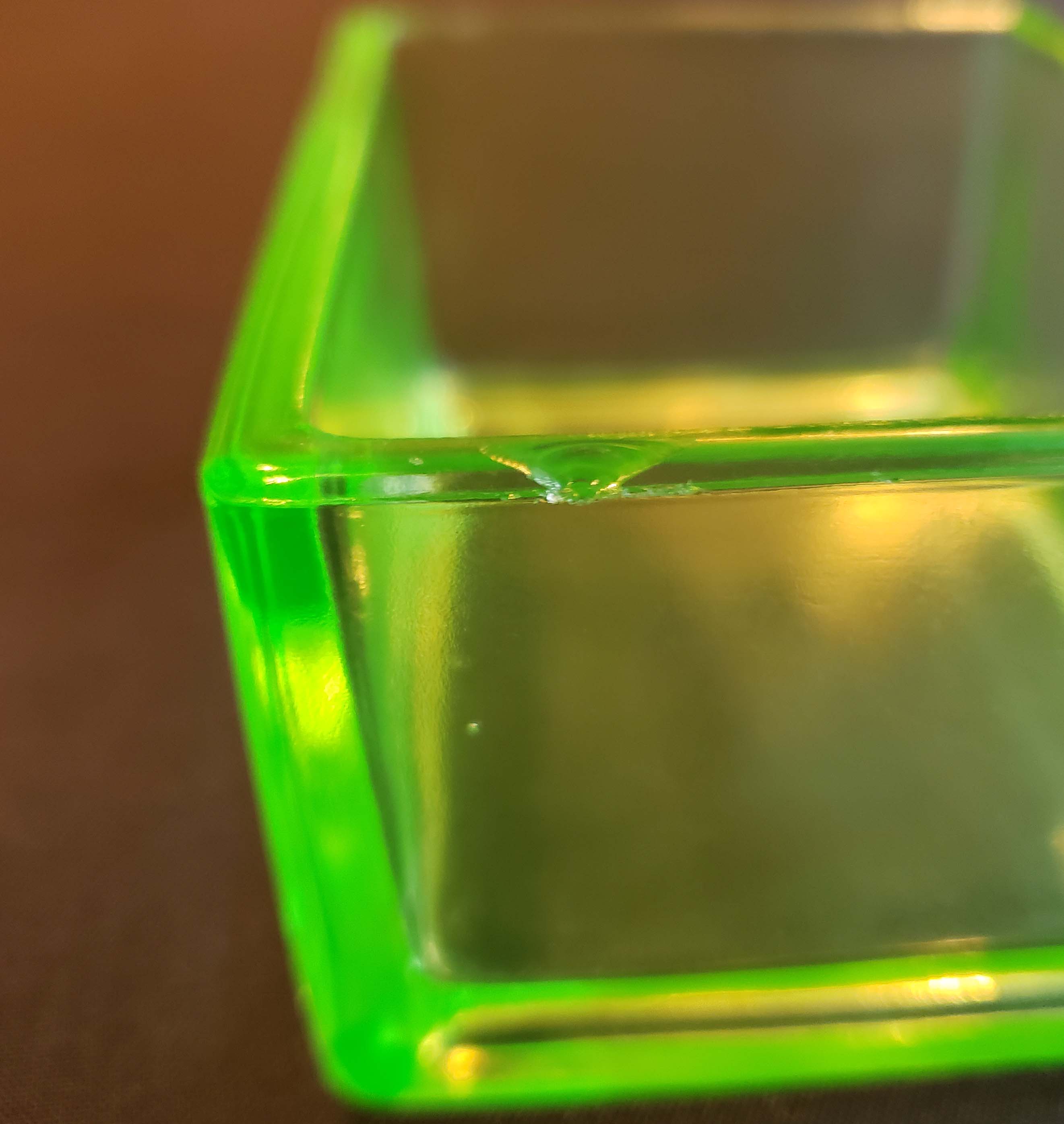 Cambridge Glass Co. Covered Trinket or Cigarette Box etched 704 in Light Emerald Green color from 1927. 3 3/4 inches wide by 2 7/8 inches deep by 2 inches high. In excellent condition - one exception is a small chip on the rim of the base as shown in the photos.