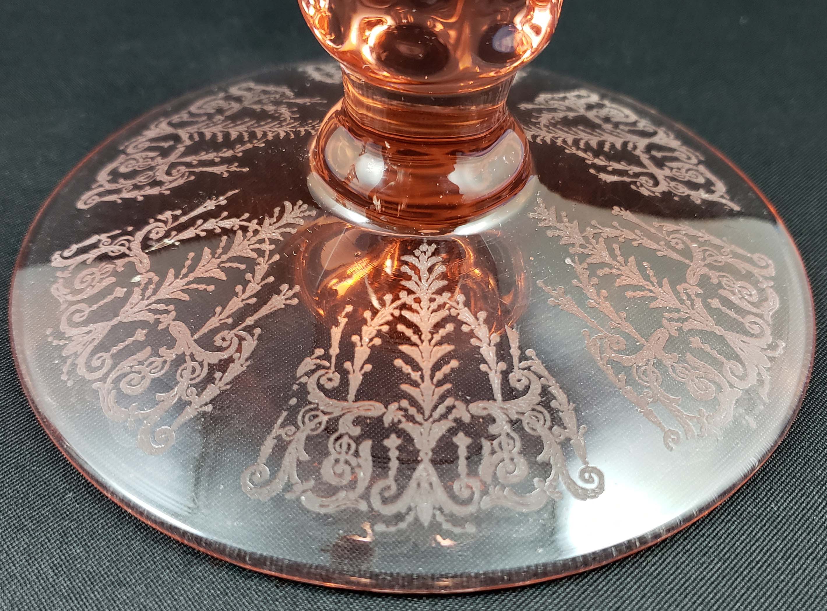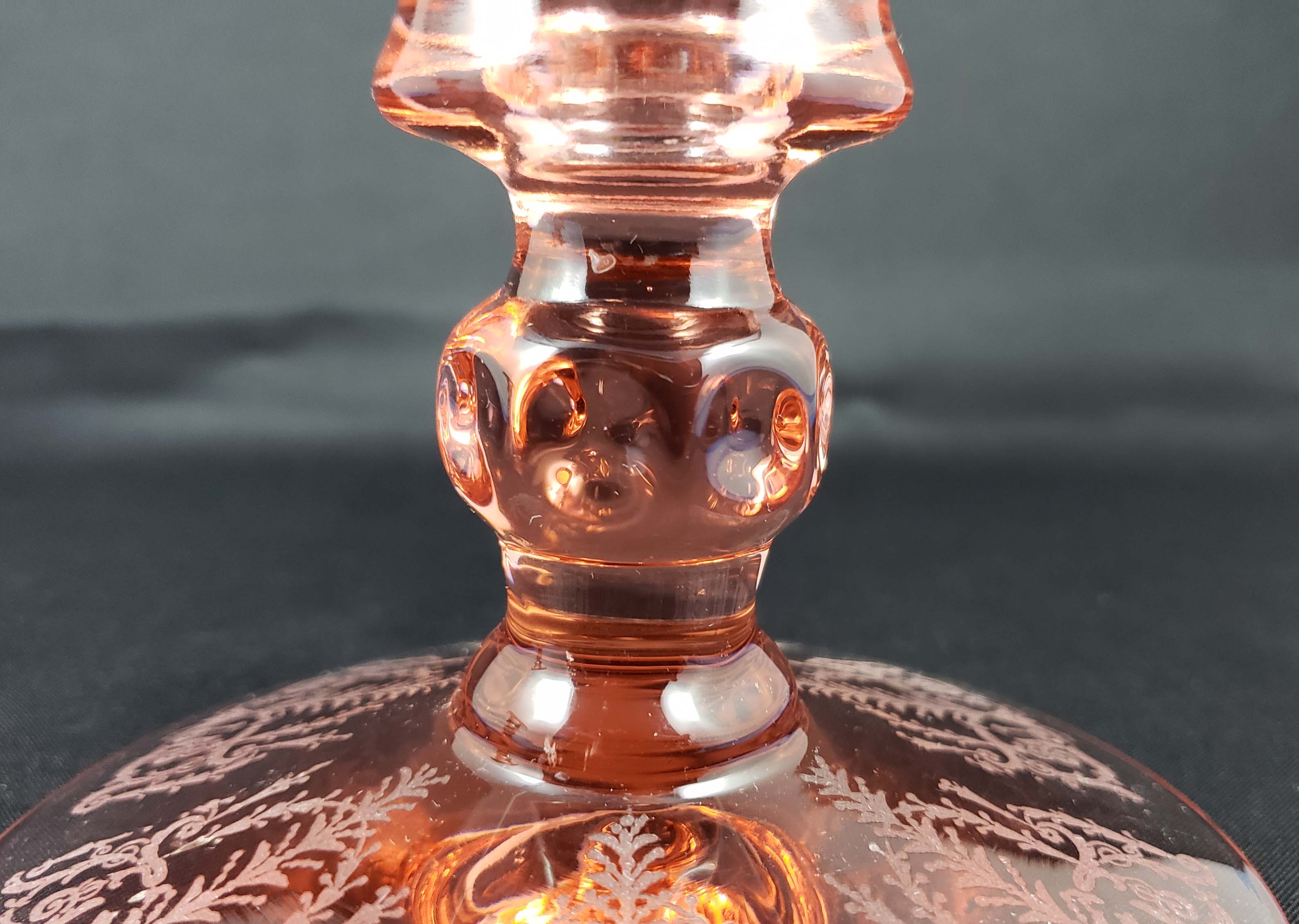 Cambridge Glass Co. Pair of Single Candlesticks Etched Cleo in the Peach Blo (pink) color