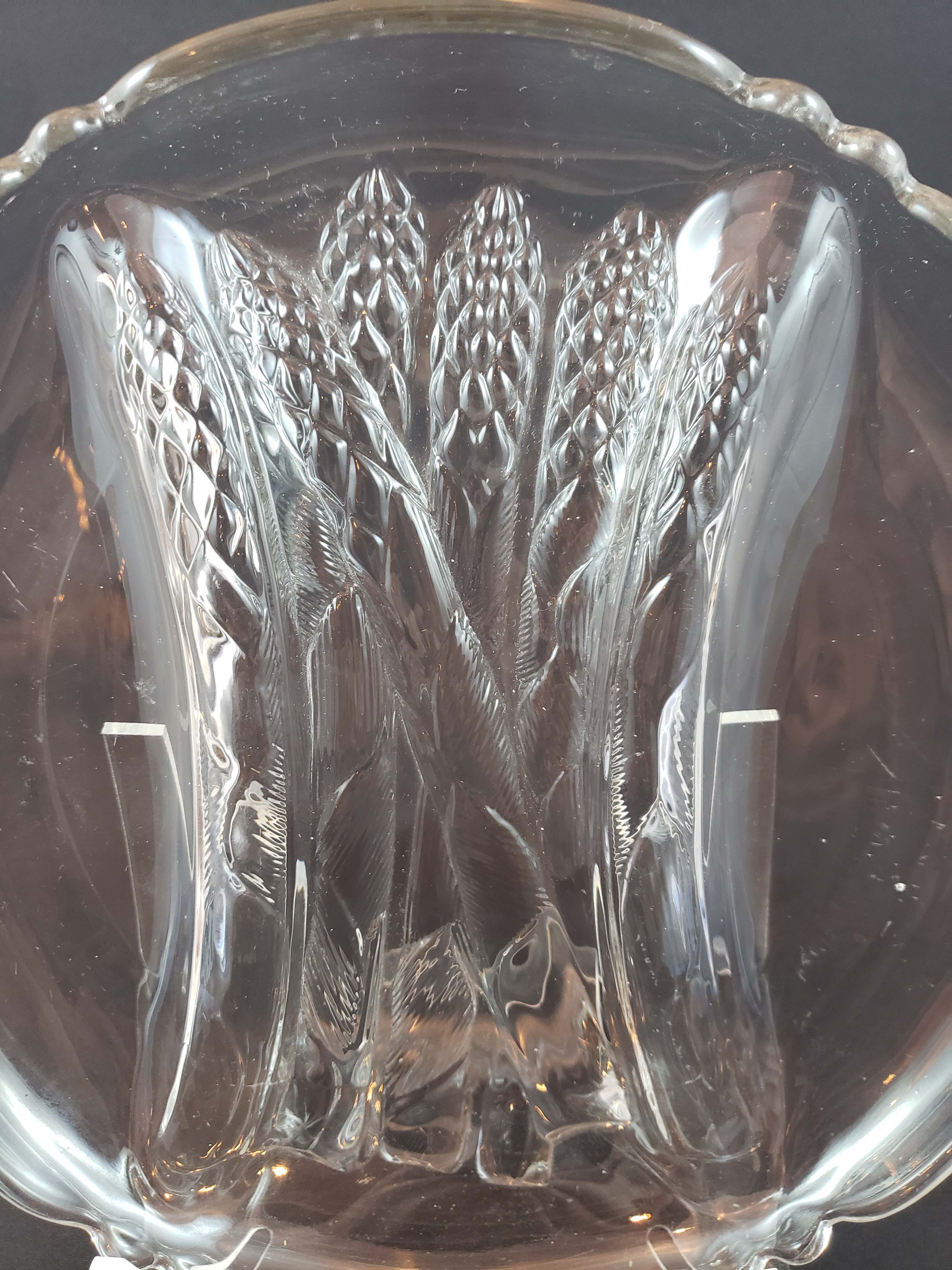 Hard to find Cambridge Glass Company 8 1/2 inch asparagus plate in crystal. In excellent condition - with minor wear marks on the bottom side of the dish which are difficult to see. Crystal is very clear and bright.