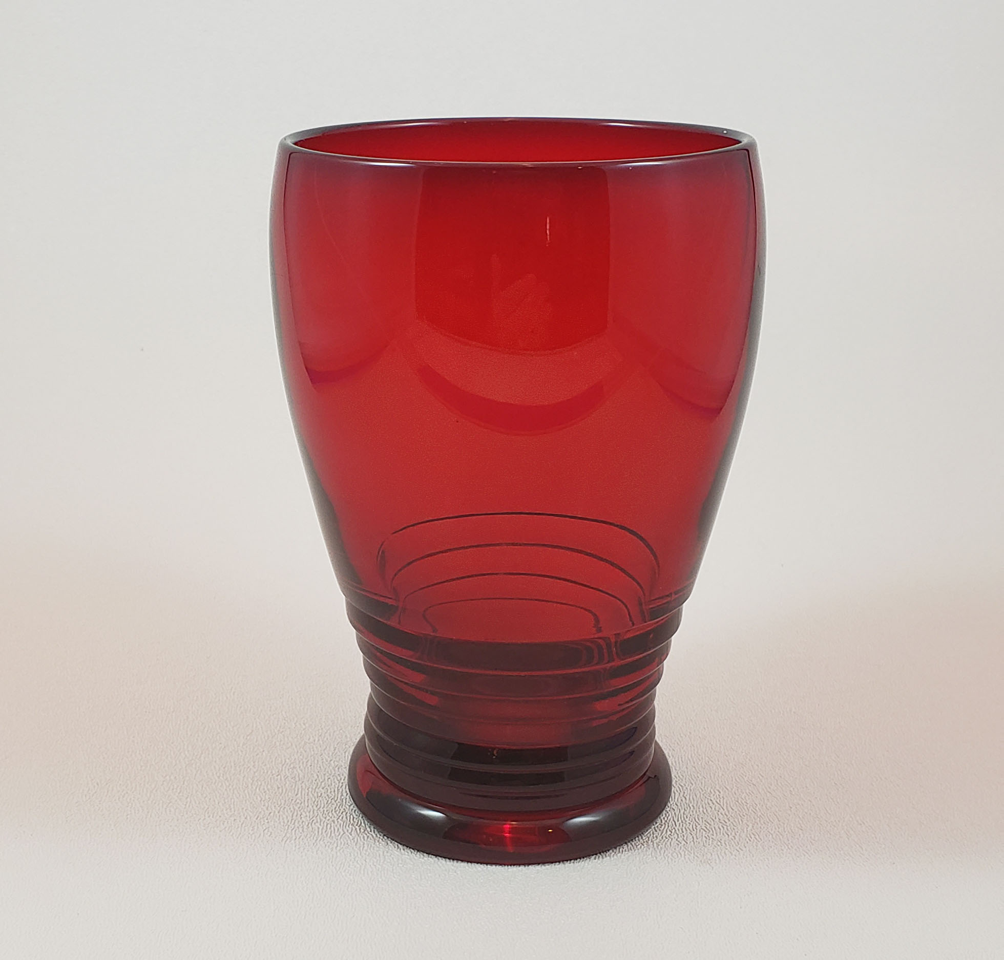 Set of 6 Cambridge Glass Company 10 oz. tumblers in Cambridge's Tally-ho Pattern from the 1930s, in a deep, rich red color named Carmen. Great for elegant or casual entertaining year-round, but especially during the Christmas season! All six are in excellent condition with no chips or scratches.
