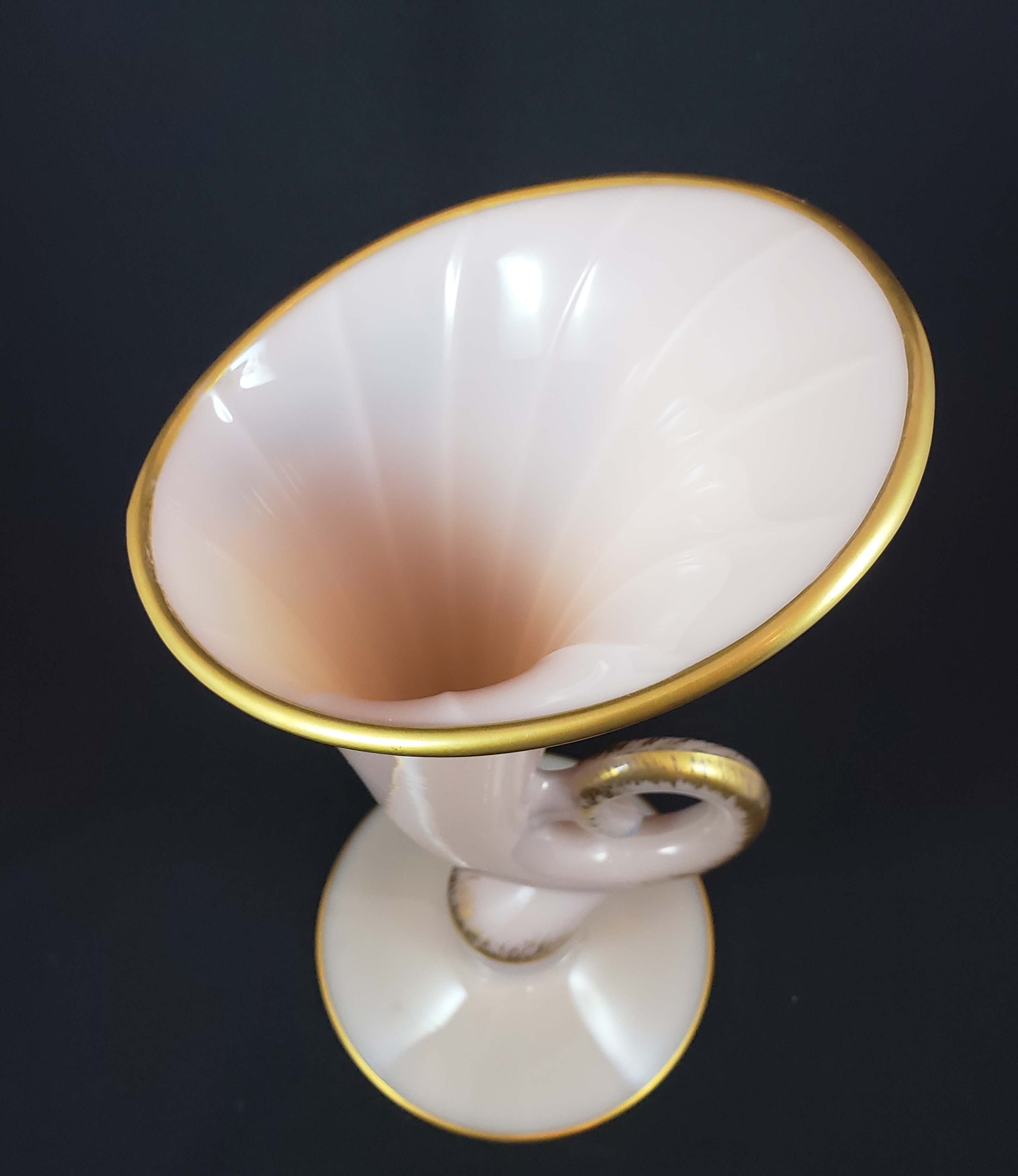 Cambridge Glass Crown Tuscan Large Cornucopia Vase Gold Trimmed