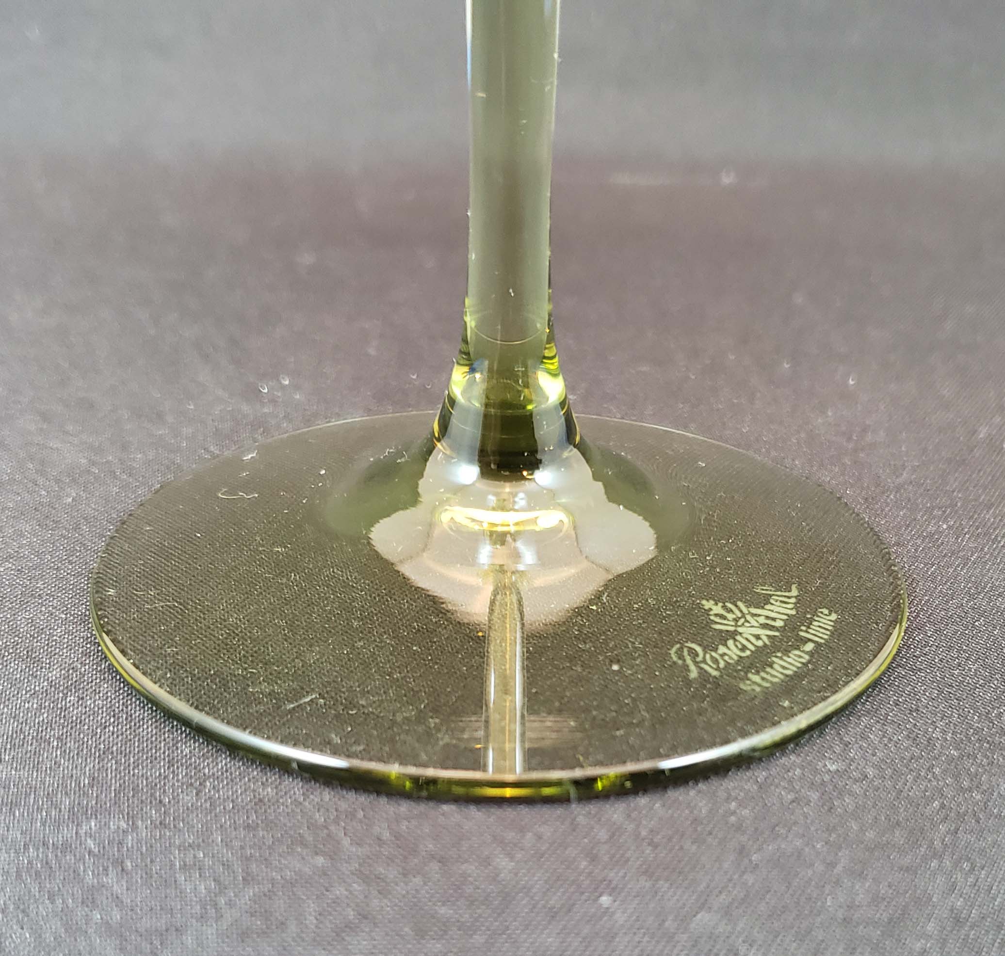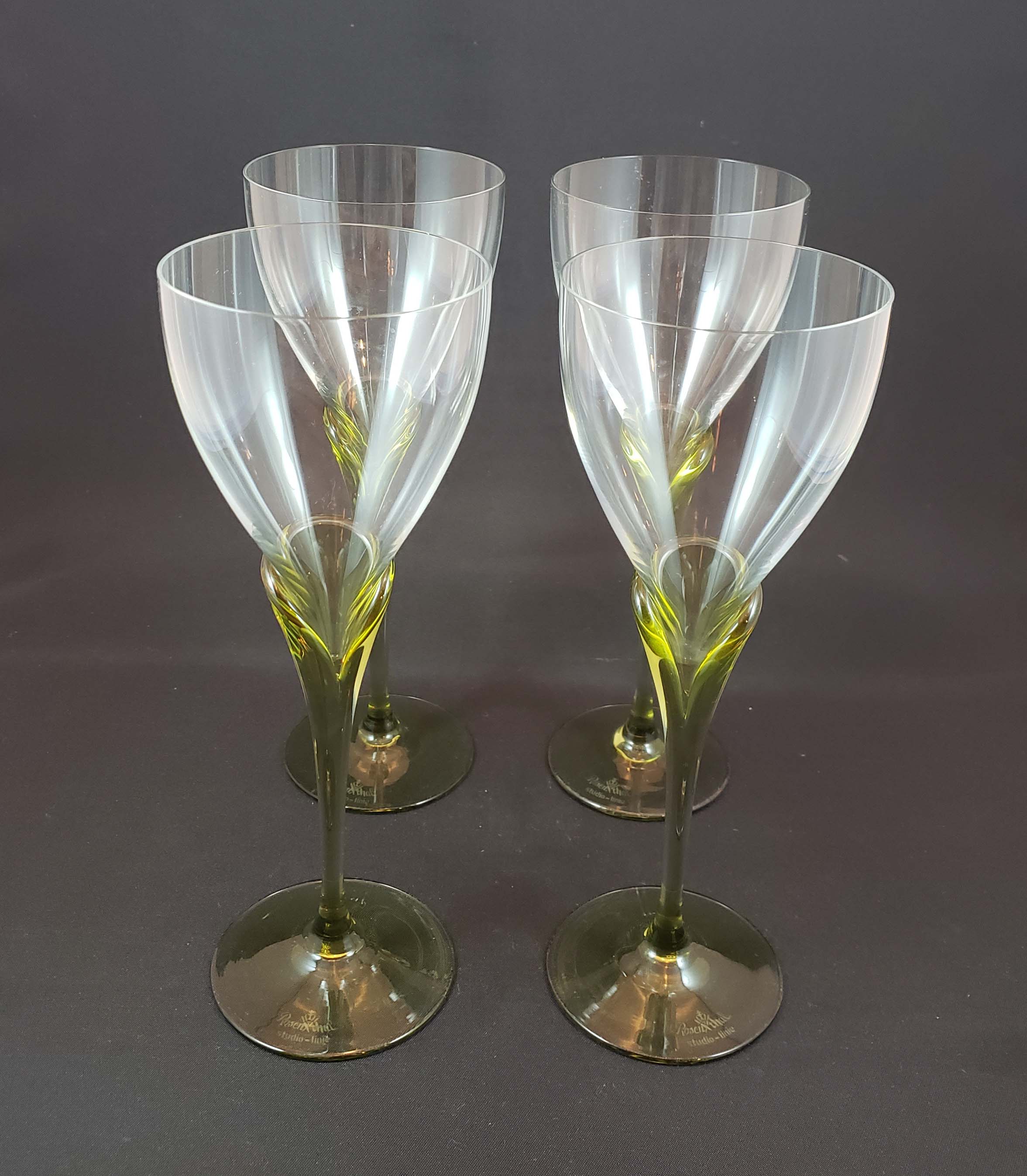 Set of 4 signed Rosenthal Wine stems, 6 oz. capacity and 8 inches tall. Beautiful and elegant "tulip" stem design in a rich light olive color. Excellent condition with no chips or scratches. Vintage 1980.