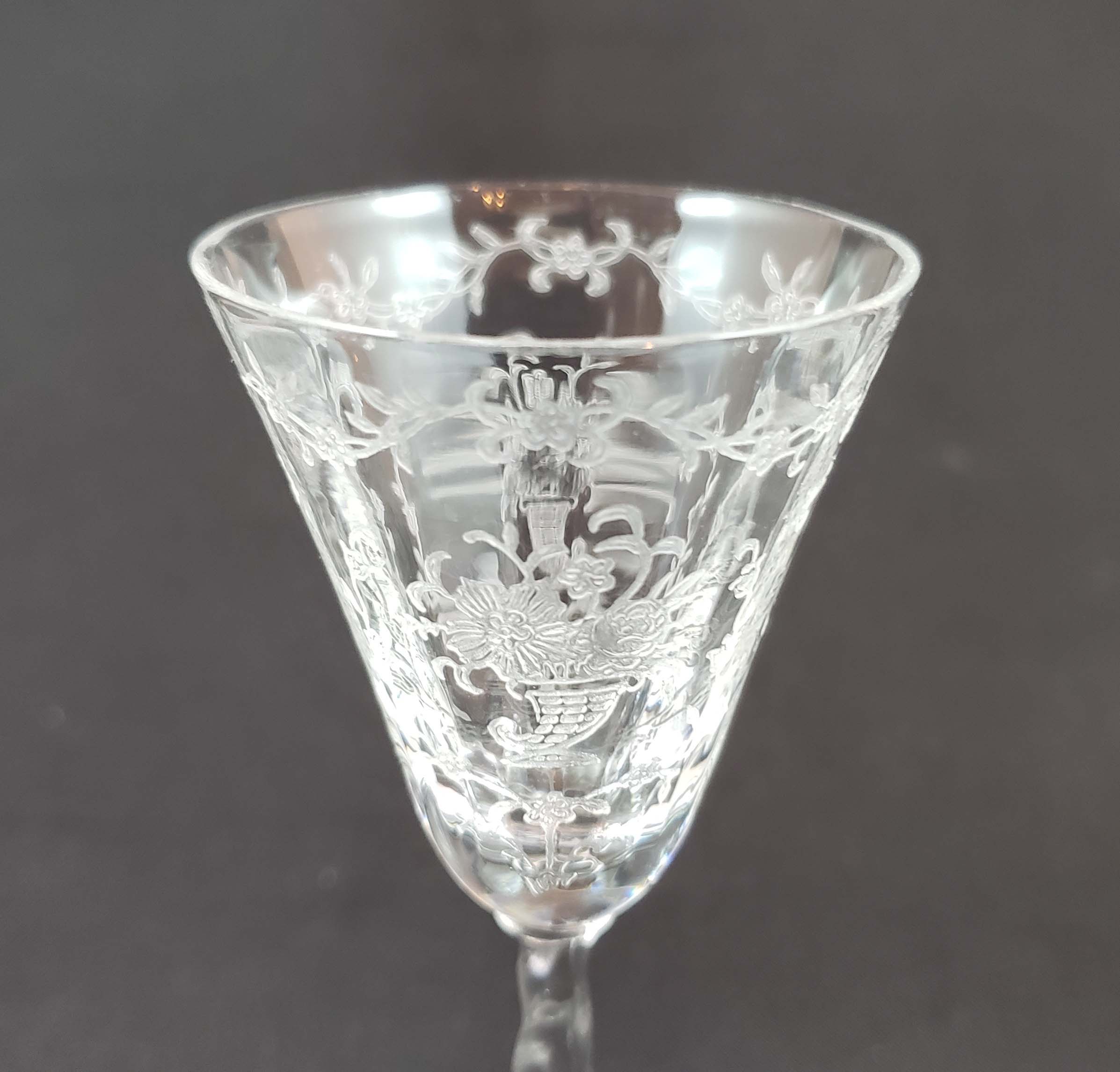 Fostoria Glass Company 1-oz Cordial - Mayflower pattern in clear crystal. 3 3/4 inches tall. In perfect condition.