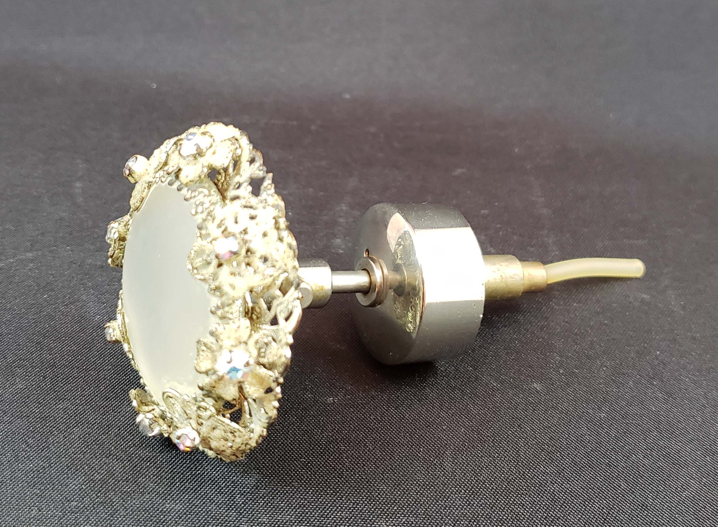 DeVilbiss Perfume Atomizer w/Toso/Murano White Filigree Swirl - Jeweled Top