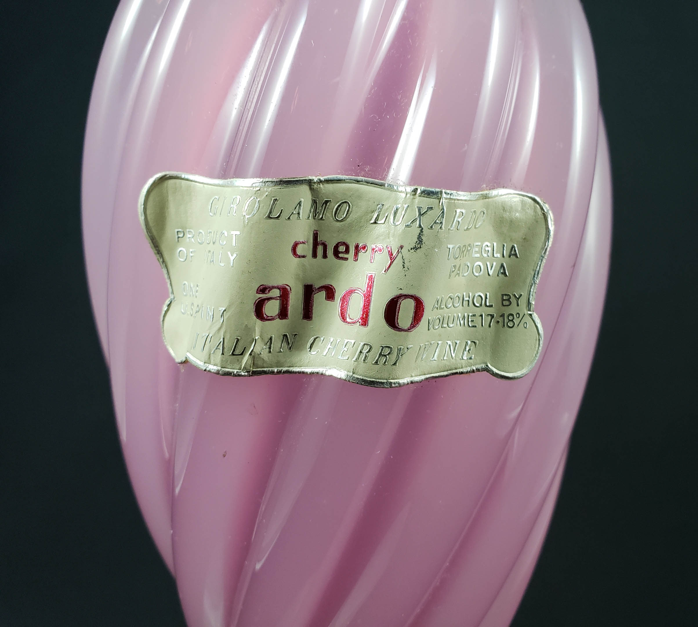 Rare Bottle Candlestick by Archimede Seguso, Murano glass master. Mid-century Modern (MCM) swirl patter in Rose and White Alabaster. Made in the 1960s for Luxardo liqueur company with original label. 12 inches tall and 4 1/2 inch diameter base. In excellent condition with no issues.