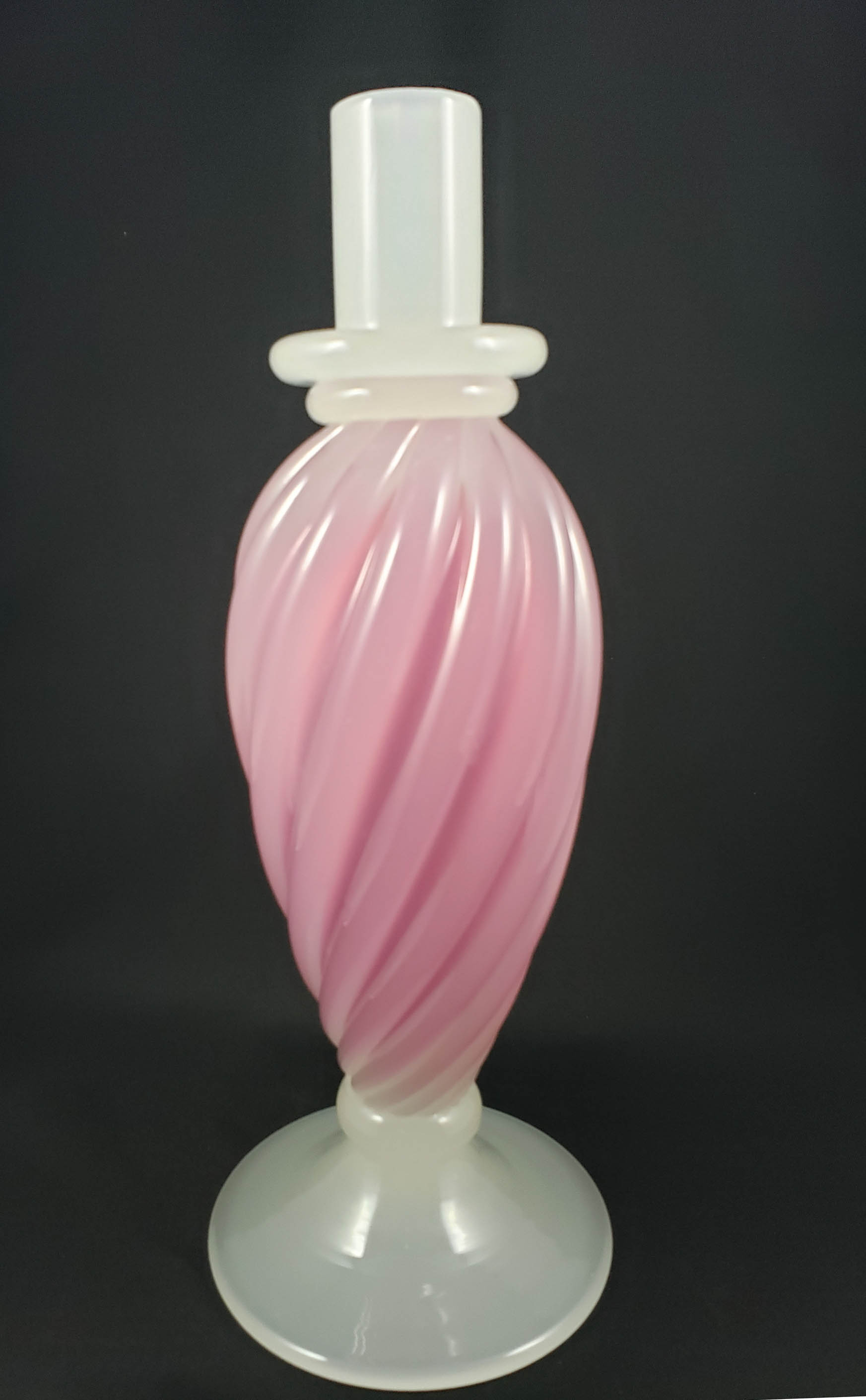 Bottle Candlestick by Archimede Seguso (Murano) Rose and White Alabaster Swirl