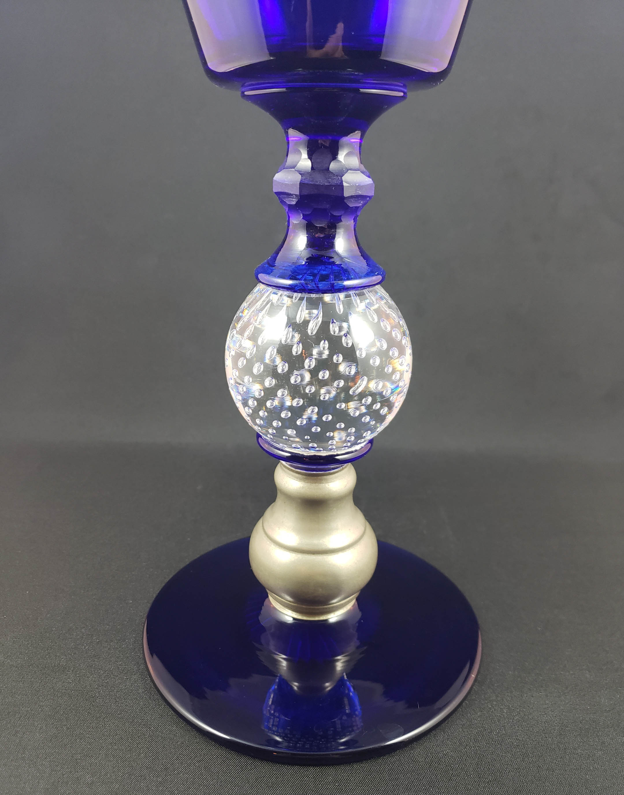 Pairpoint Chalice Vase - Cobalt with Pewter Connector - Fine Arts Line