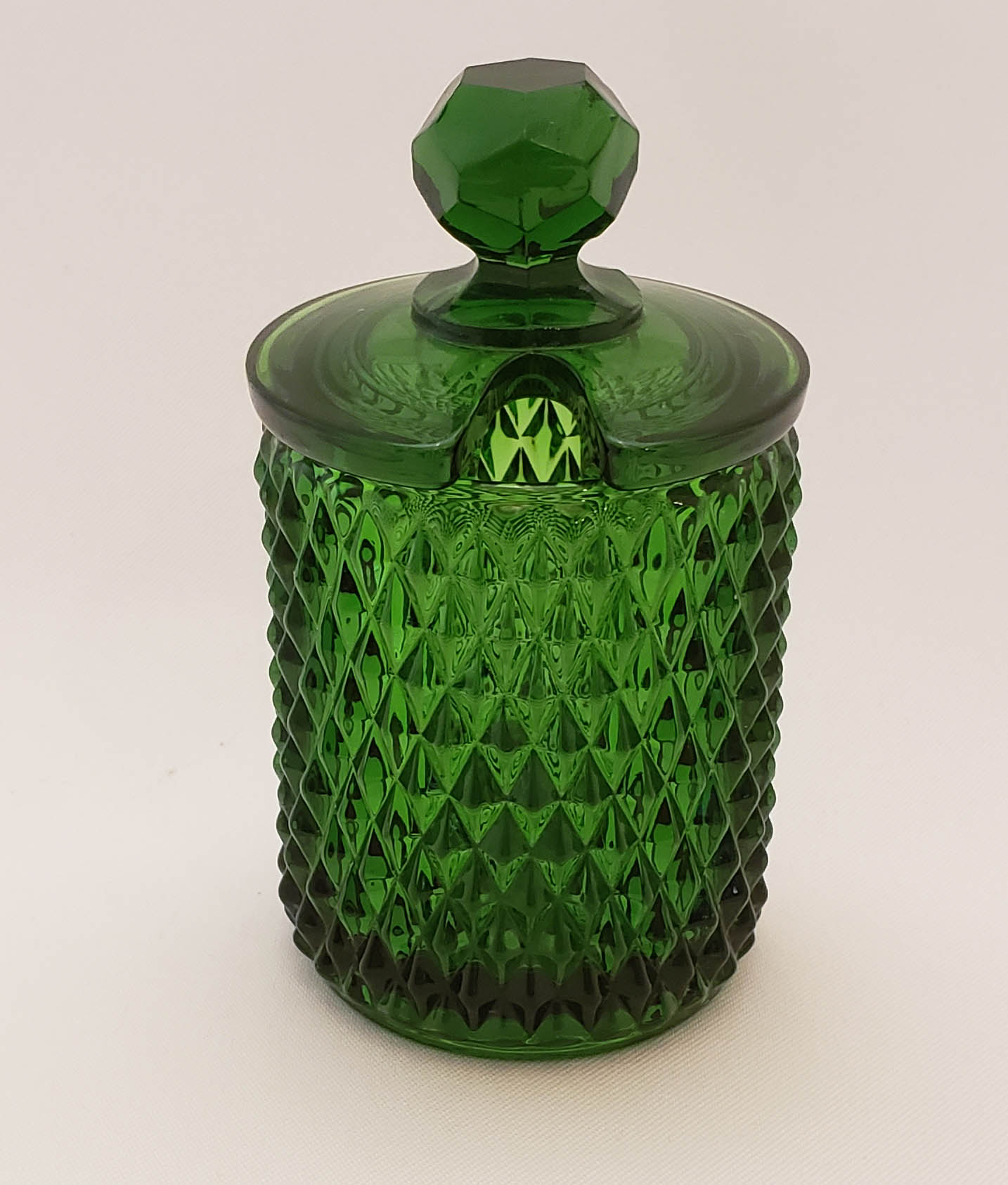 Cambridge Glass Covered Mustard Jar - Mt. Vernon Dark Emerald
