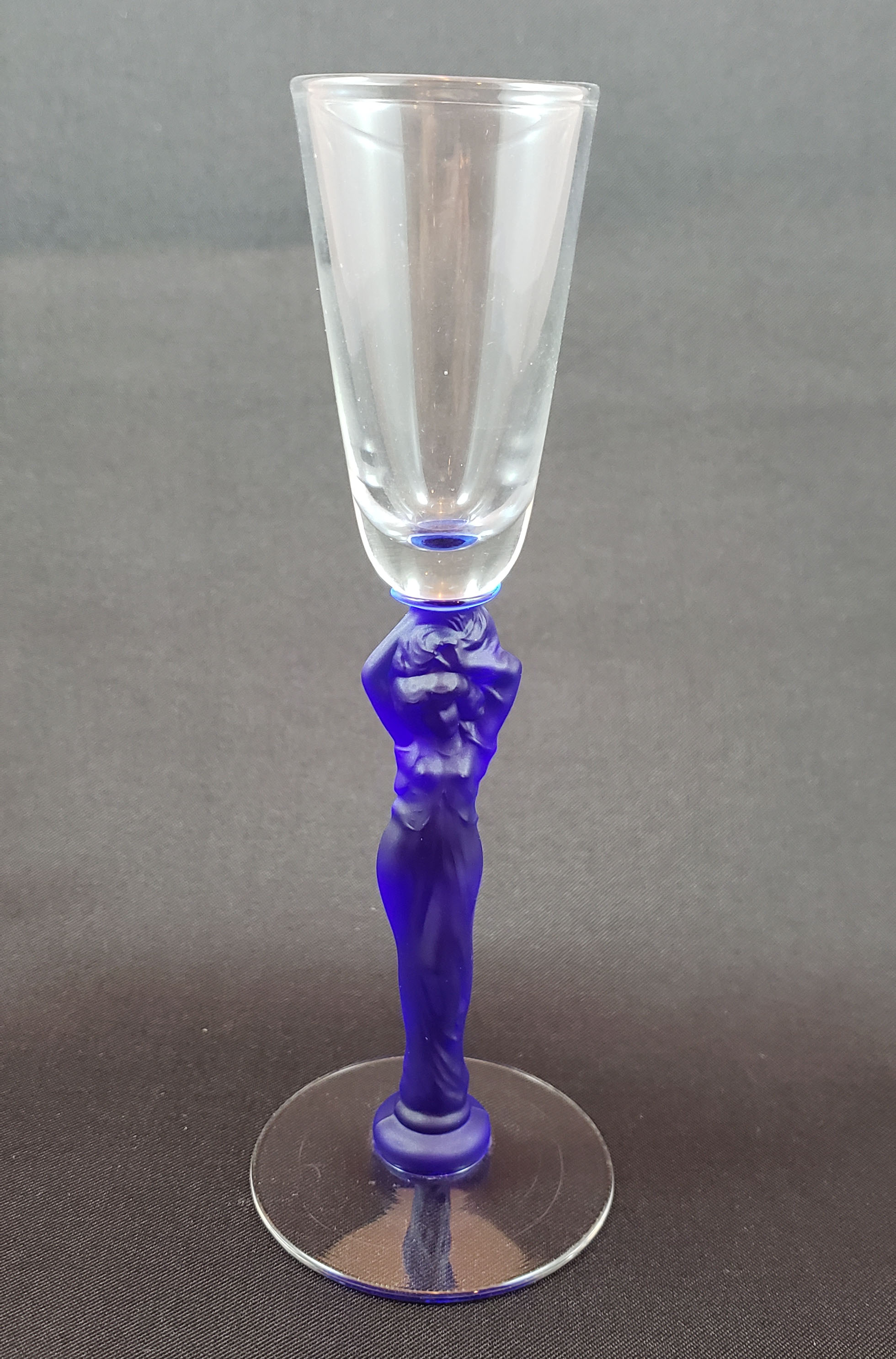 RARE Tiffin Draped Nude Cobalt Blue stem 1 ounce pousse cafe cordial. 6 inches tall. In perfect condition. Very rarely seen shape! ... (more)