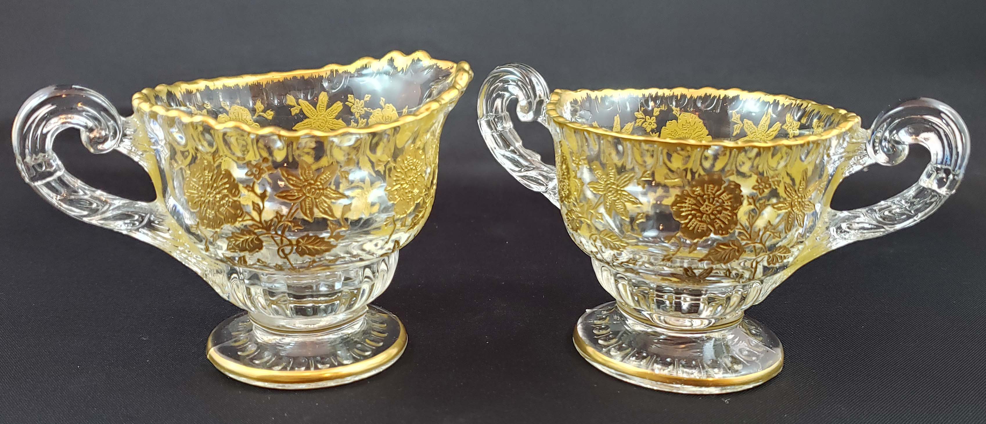Cream & Sugar - Cambridge Gold Encrusted Wildflower Etch - Gadroon
