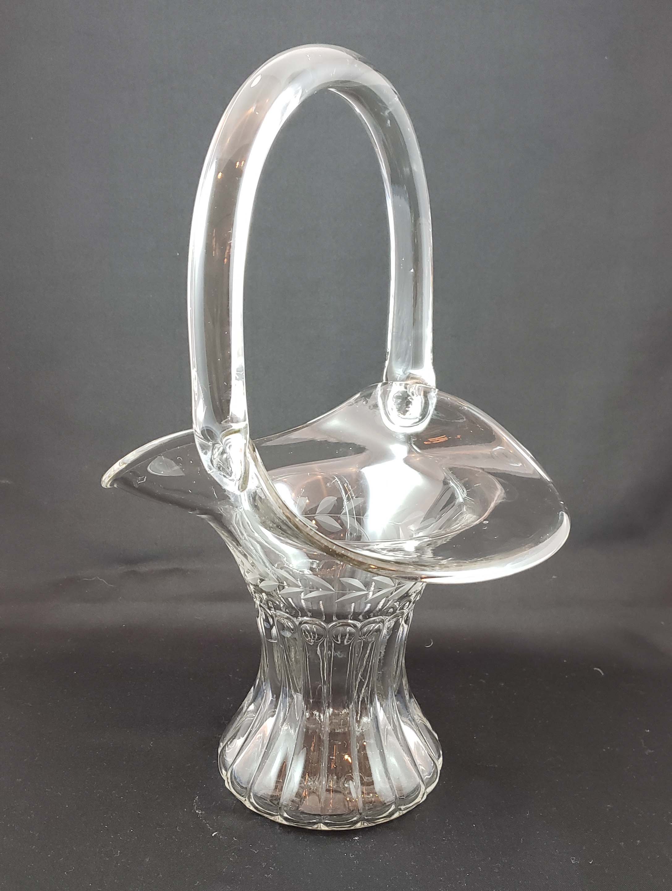 Basket Vase - Cambridge Glass Co Elegant Crystal Chelsea Pattern Laurel Engraved