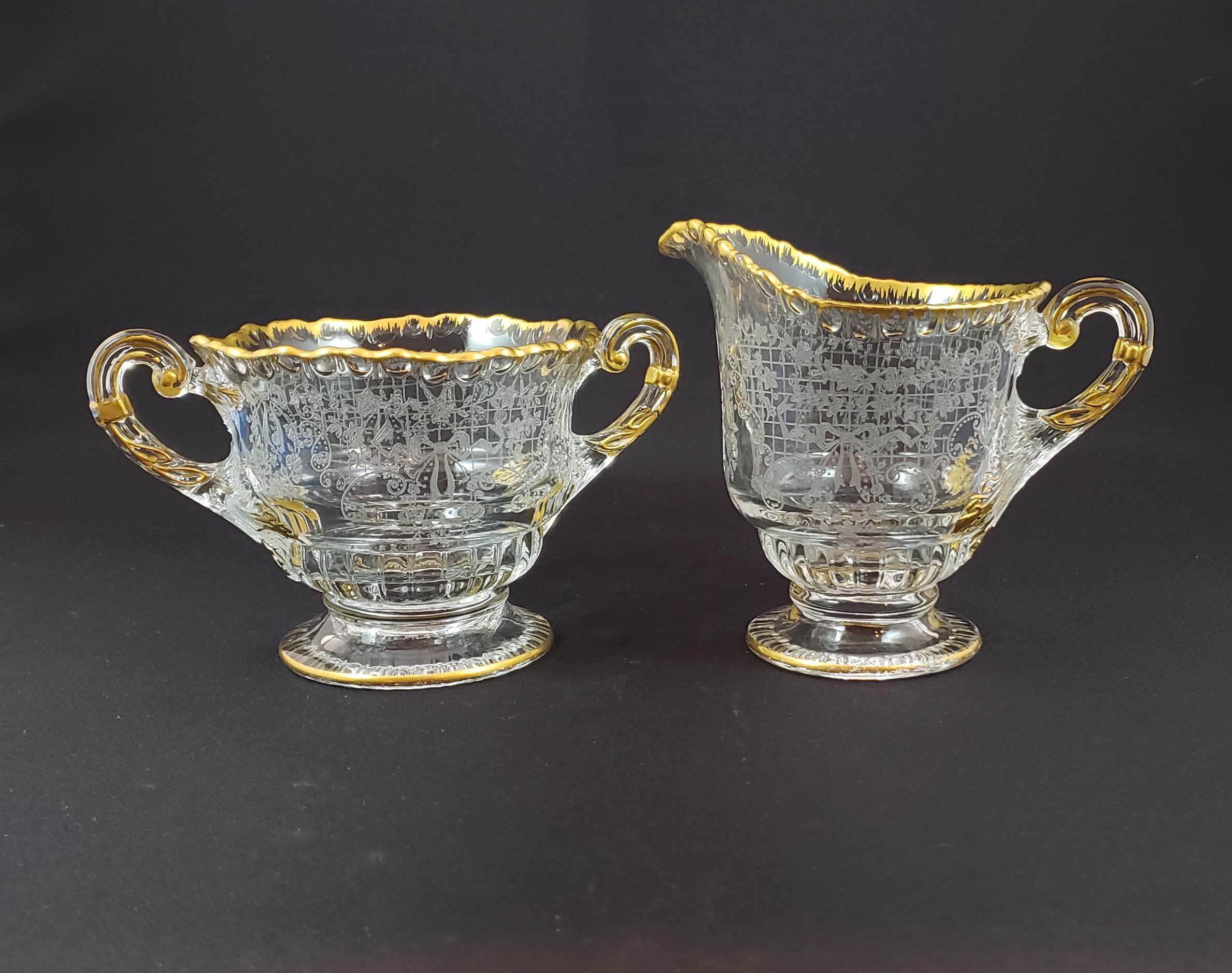 Cambridge Cream/Sugar Set Etched Valencia Gold Decorated Gadroon