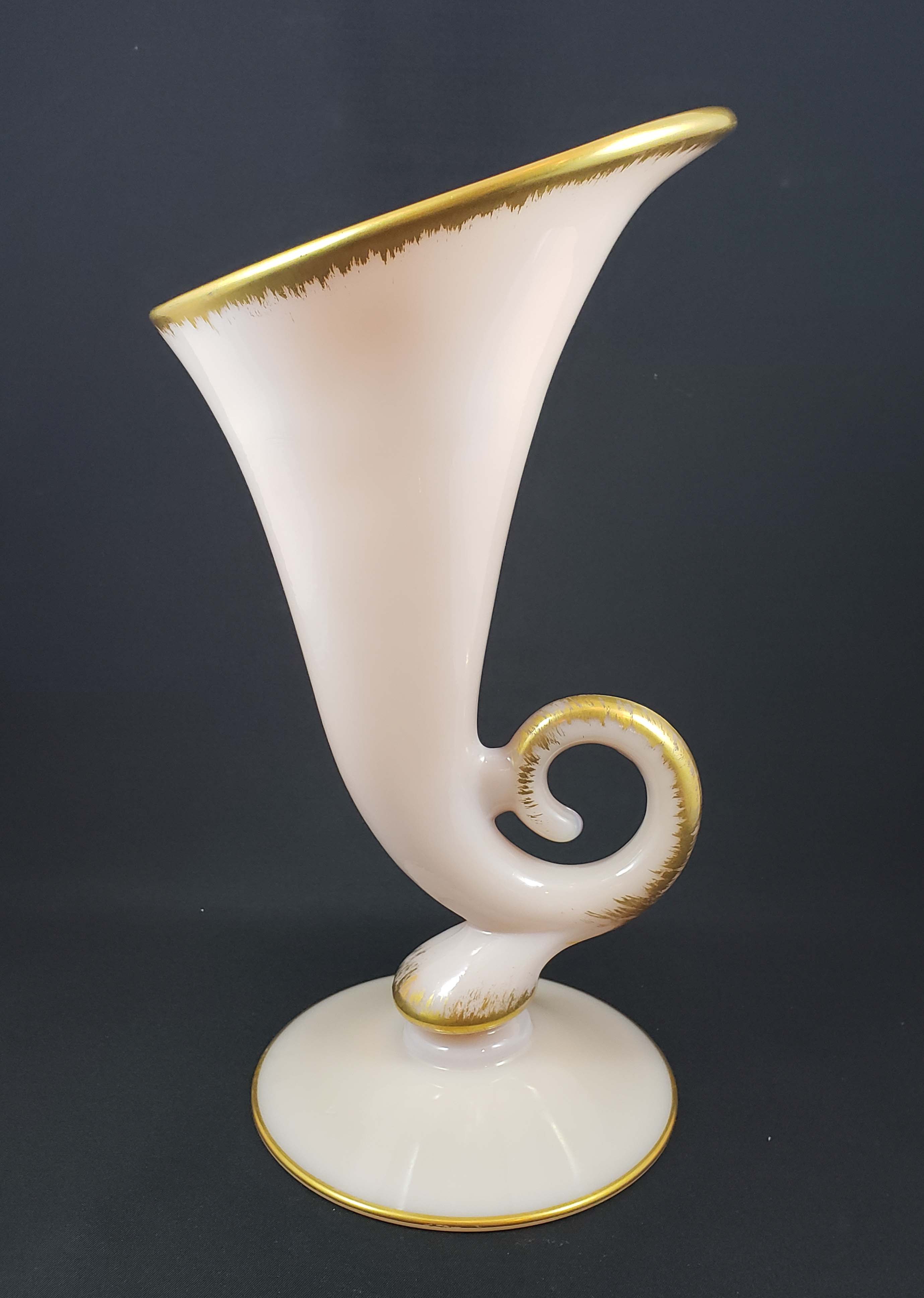 Cambridge Glass Crown Tuscan Large Cornucopia Vase Gold Trimmed