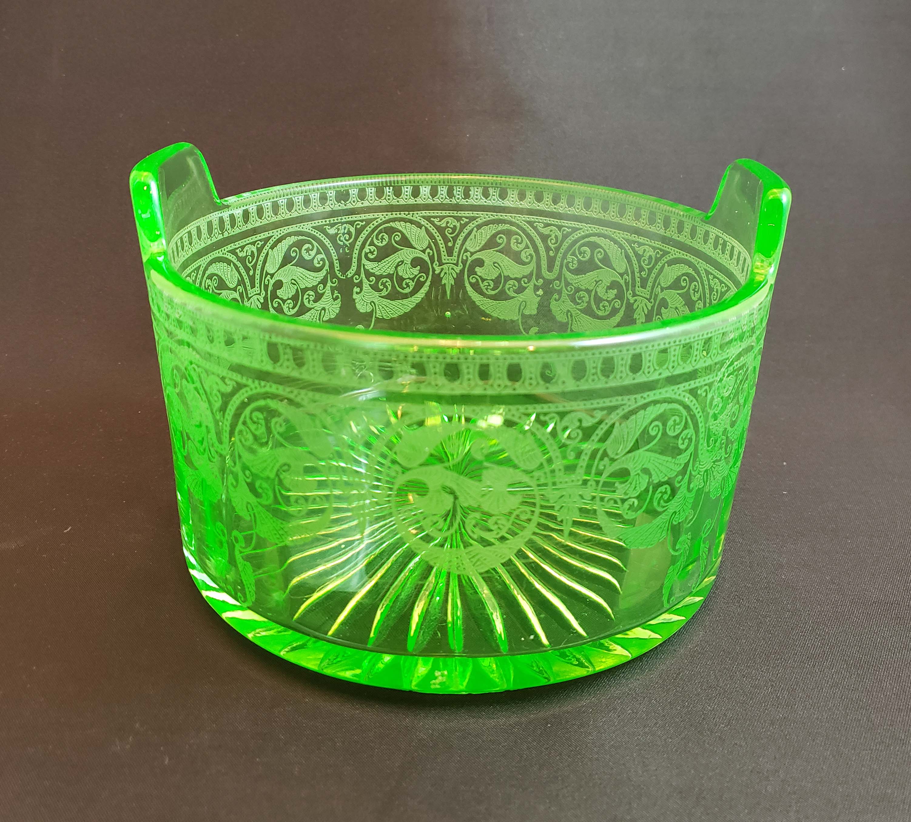 Cambridge Glass Co. Ice Tub Etched 704 Light Emerald Green 1927