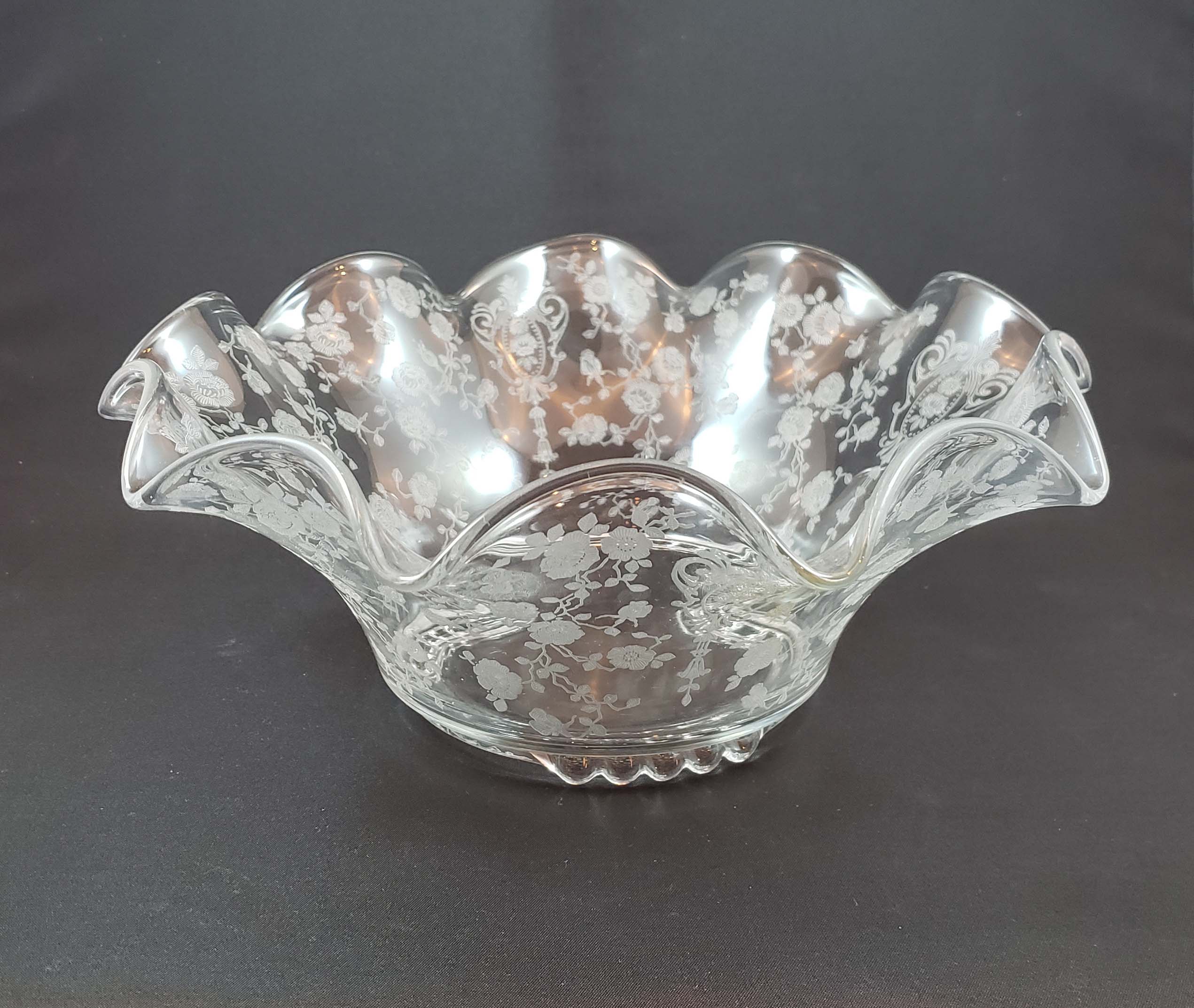 Cambridge Glass Co. Rosepoint Console Bowl - Crimped Rim Beaded Feet