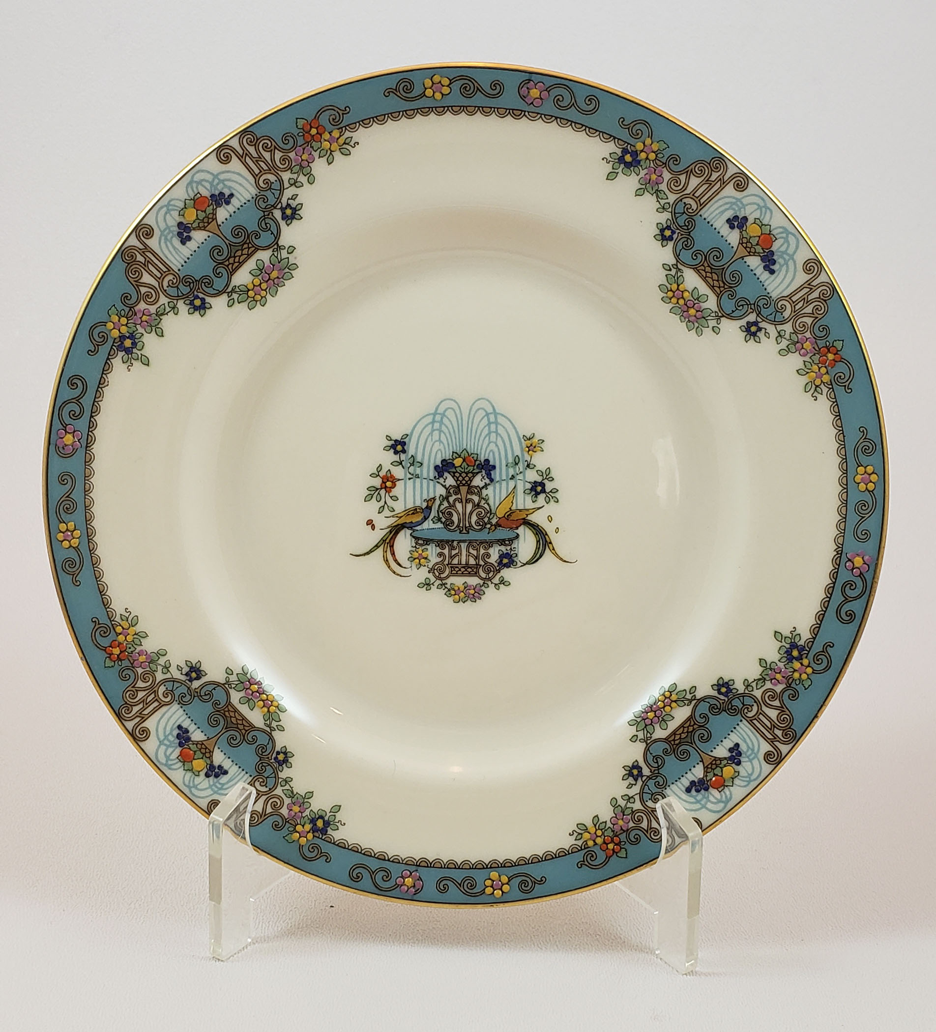 4 Lenox Fountain Bread & Butter Plates - 6 1/2 inches 4 Lenox China Fountain Pattern Bread & Butter Plates (6.5") - from 1920s - 1930s. Fountain is an intricate, elegant and colorful pattern with the fruit and flowers in raised enamel. Condition is excellent on all four - no wear, chips or scratches.... (more) SOLD |