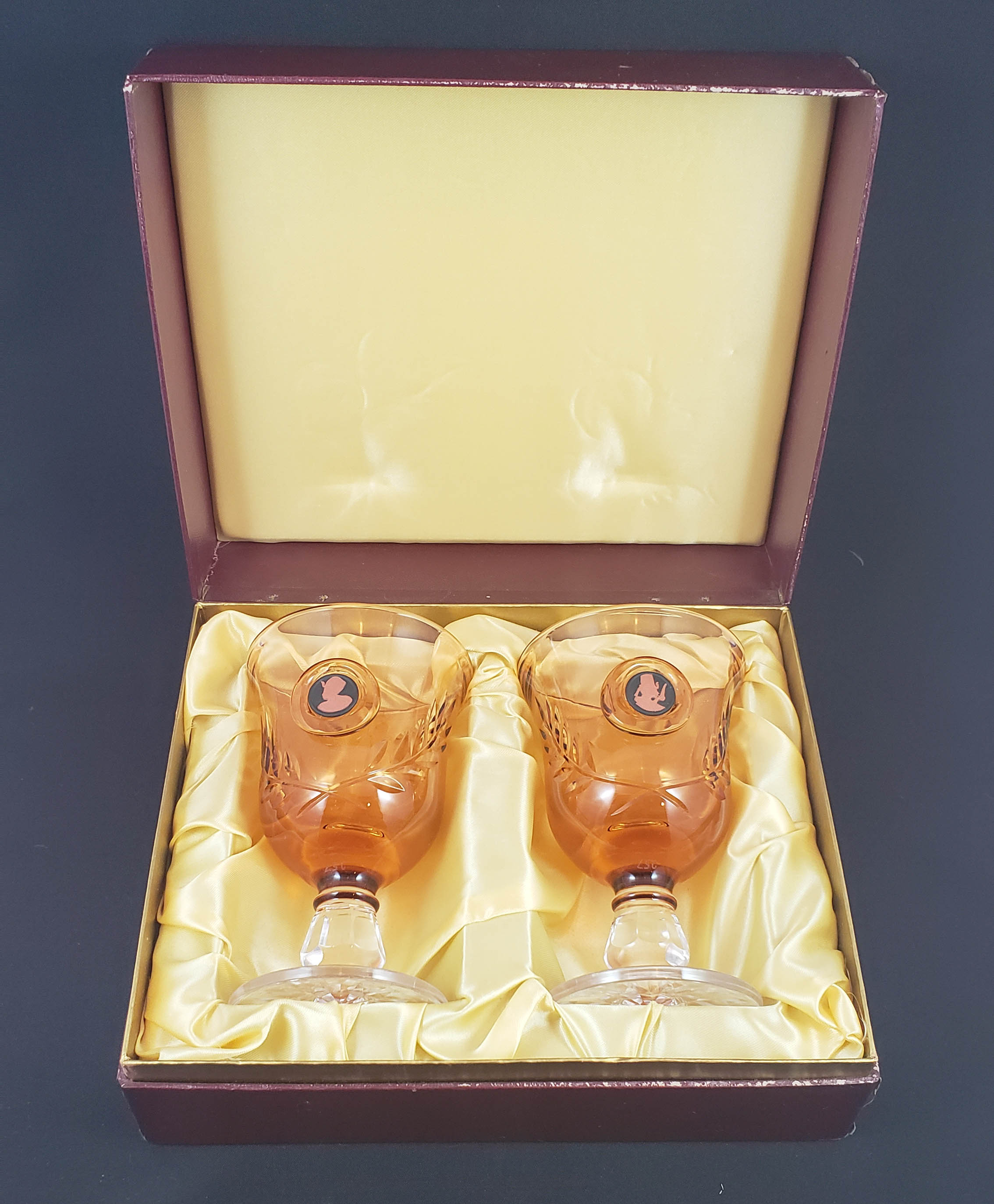 THE EGYPTIAN CHALICES by Wedgwood England - Limited Edition - 1972 THE EGYPTIAN CHALICES by Wedgwood England - Limited Edition of 500 pairs only, from 1972. This is Set Number 257, with the numbers etched into the undersides of each bowl. A stunning Limited Edition boxed pair of Topaz glass chalices with Black & Terracotta Jasper cameos of King Tutankhamun & Queen Ankhesenamun produced ... (more) SOLD |