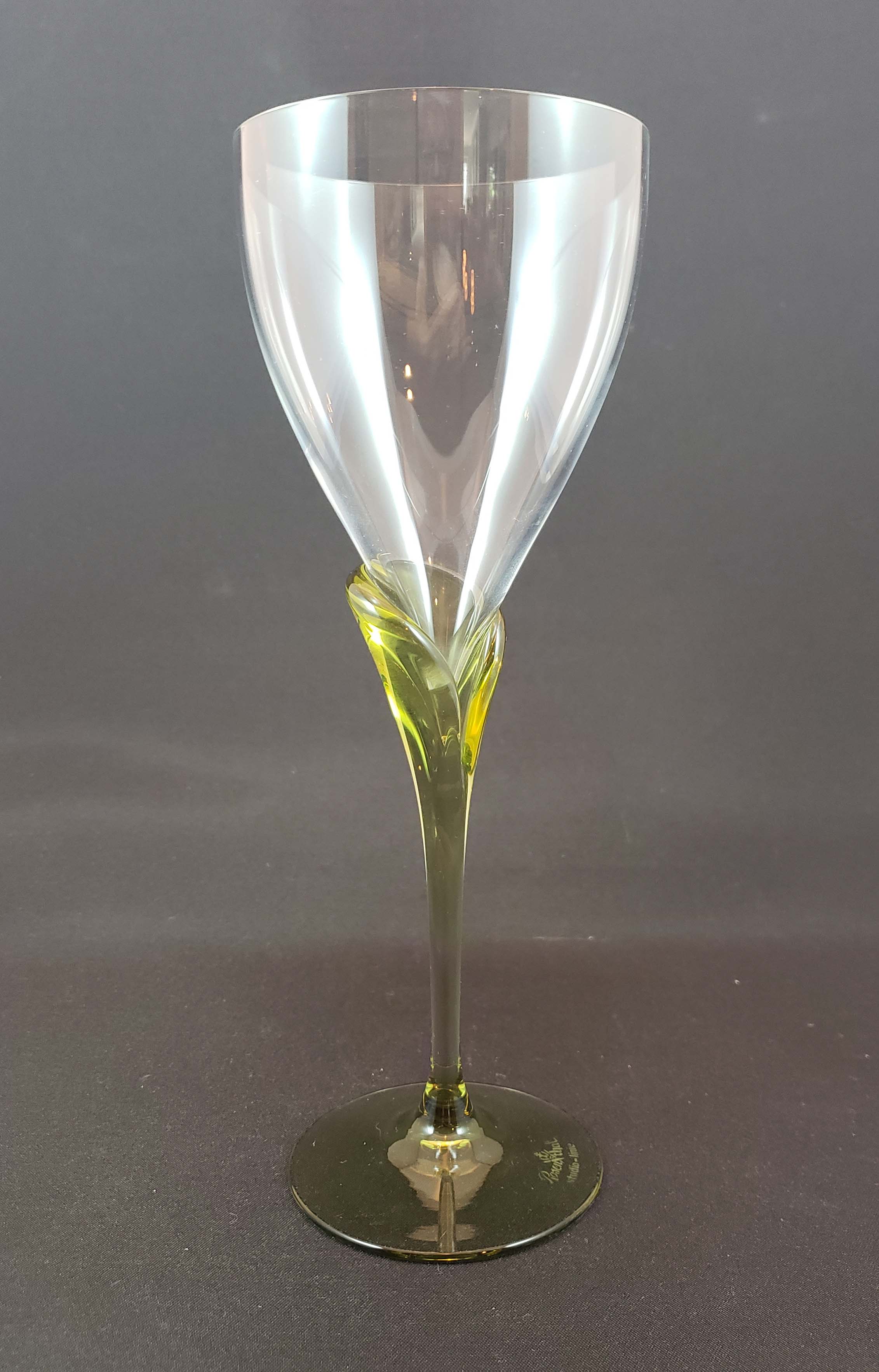 Rosenthal Papyrus Green Tulip Stem 6 oz. Wine 8 inches tall - set of 4 Set of 4 signed Rosenthal Wine stems, 6 oz. capacity and 8 inches tall. Beautiful and elegant "tulip" stem design in a rich light olive color. Excellent condition with no chips or scratches. Vintage 1980.... (more) SOLD |